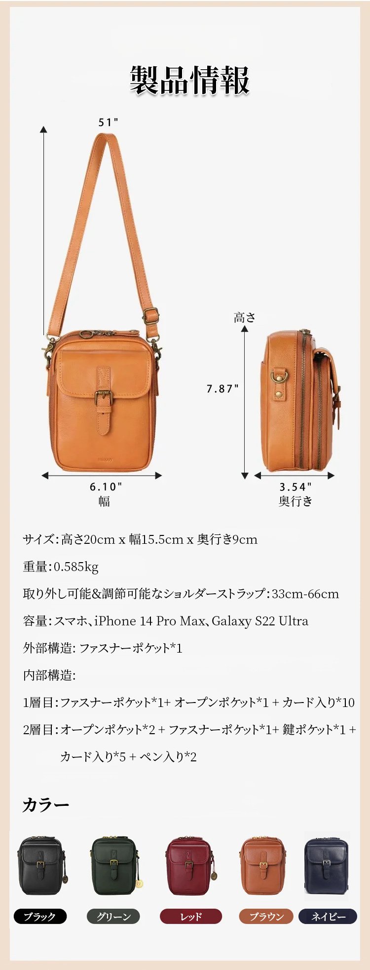 RFIDスキミング防止ショルダーバッグ