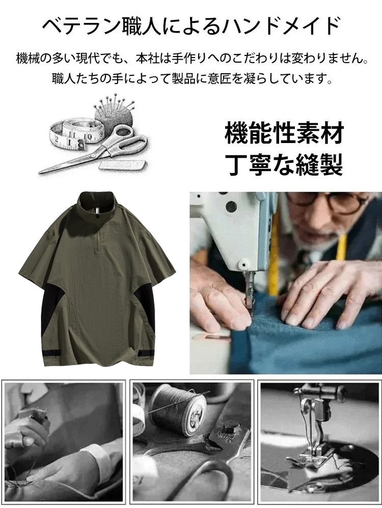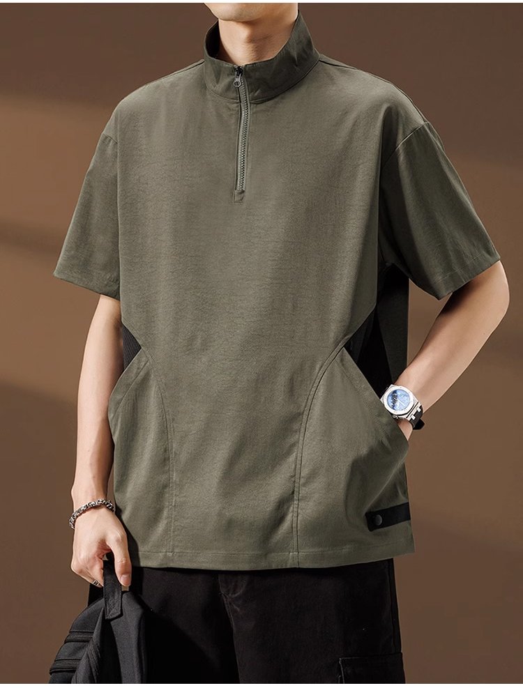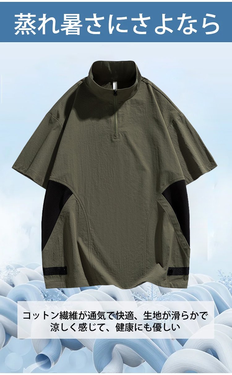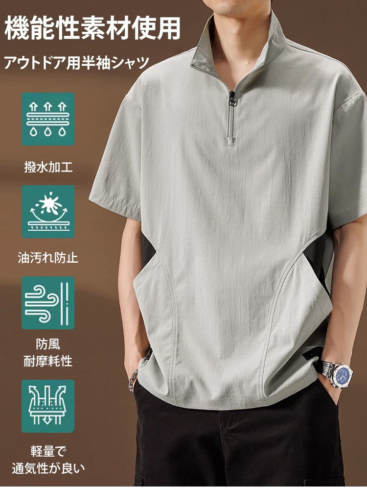 メンズ多機能ハーフジップ半袖シャツ