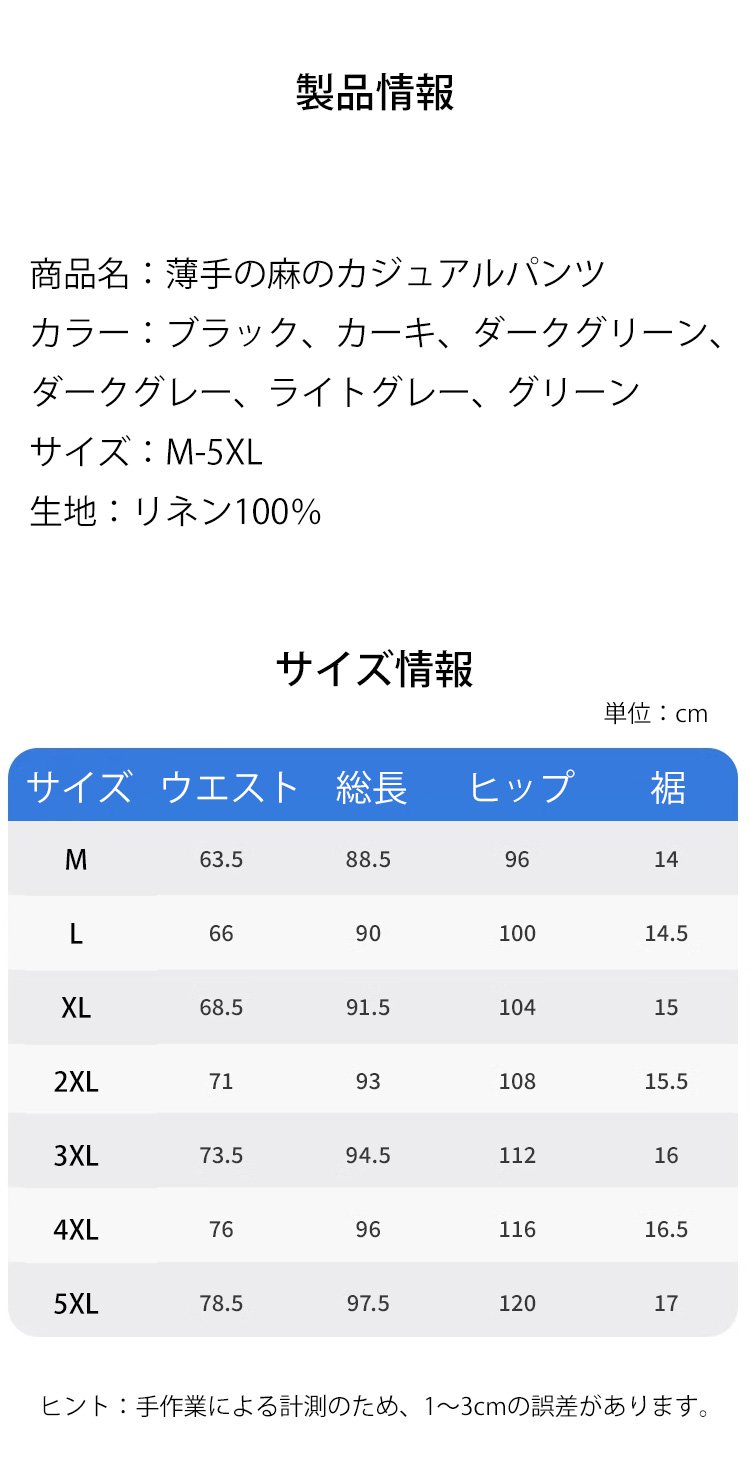 薄手の麻のカジュアルパンツ