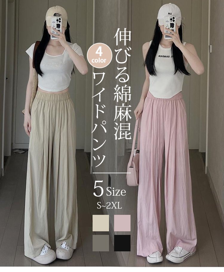 薄手の接触冷感ワイドパンツ