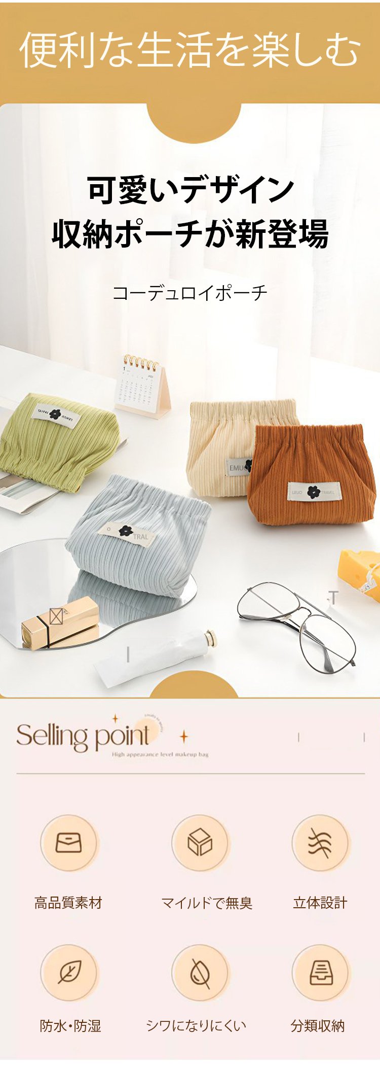 コーデュロイポーチ